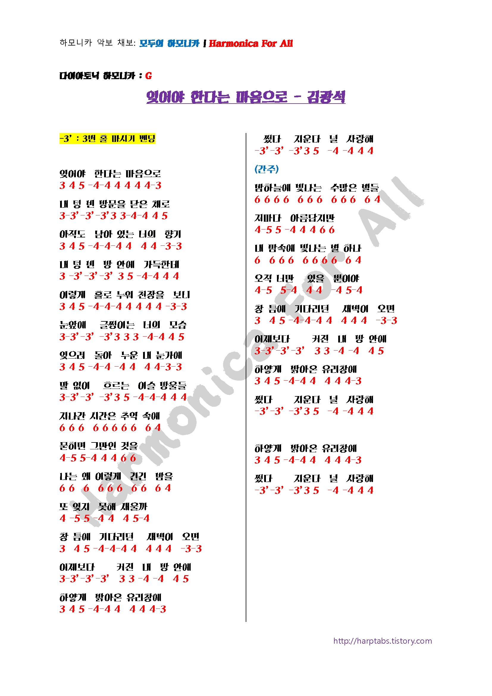 하모니카 악보 | 김광석 - 사랑했지만 (1) | 2020.07.19 |