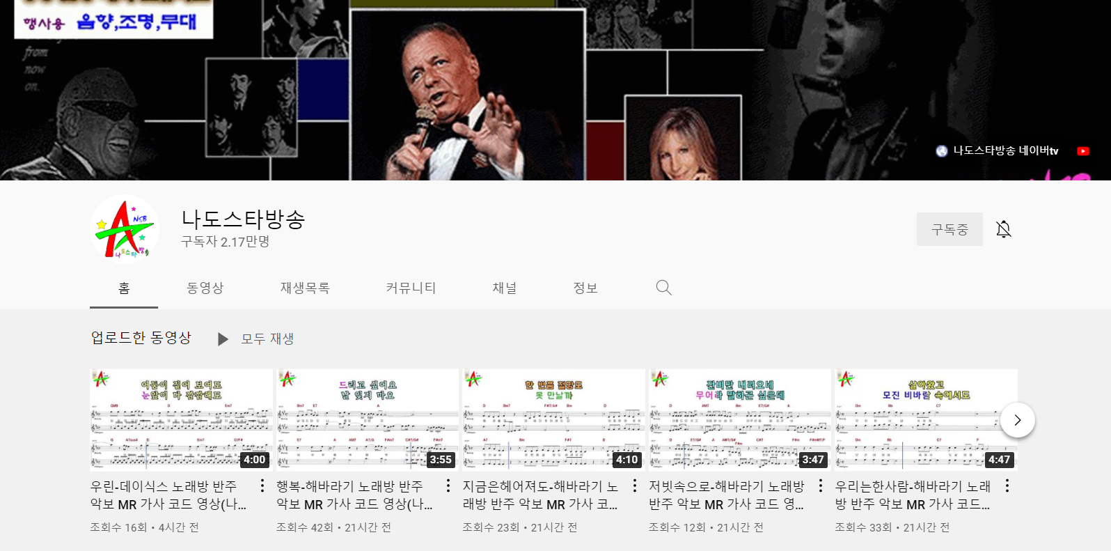 제 영상 댓글중에 반주(배경음)은 뭘 쓰냐고 묻는 질문이 몇 있는데, 대부분 이 채널의 반주를 사용합니다.