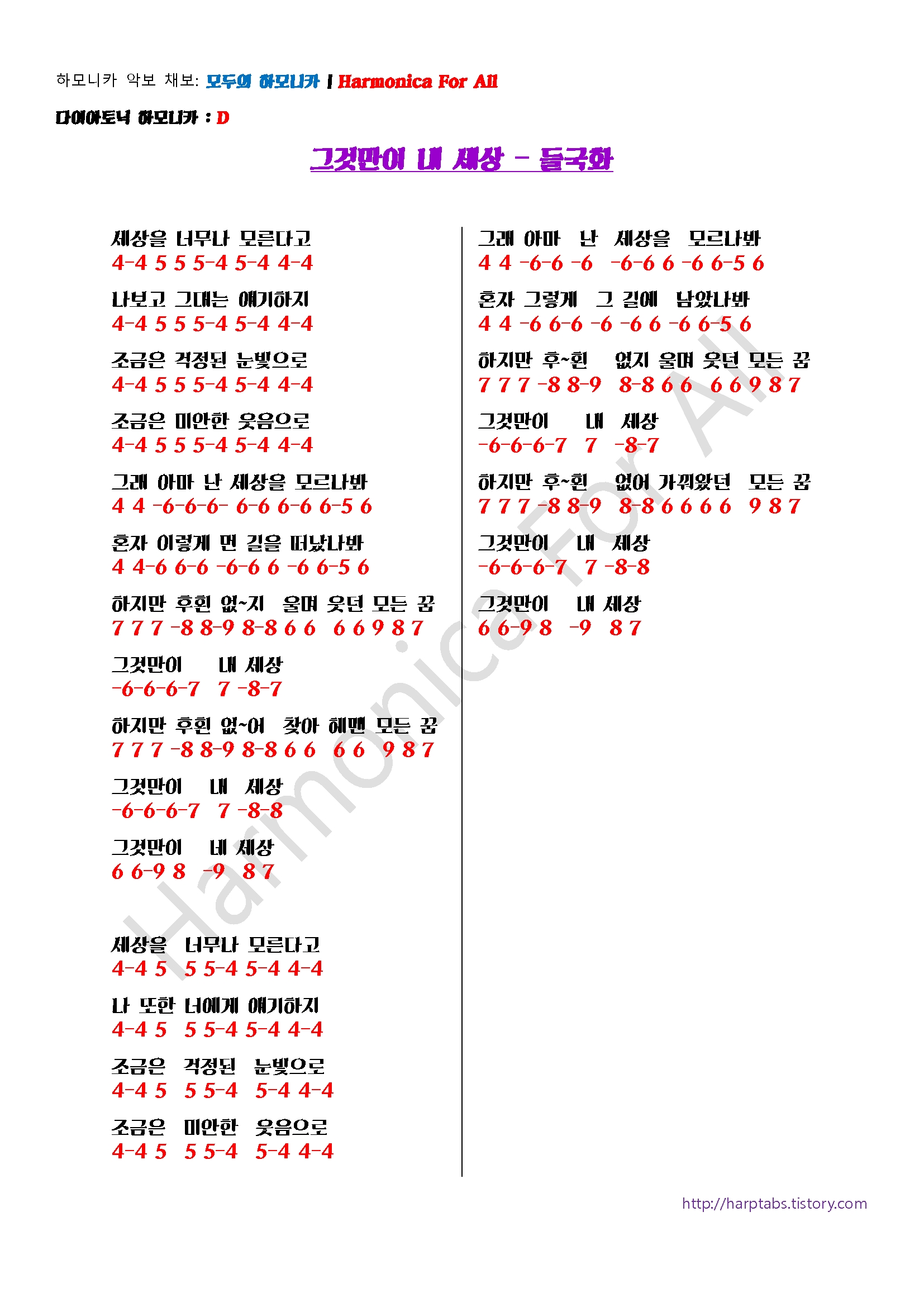 | 다이아토닉 하모니카 악보 | 그것만이 내 세상 - 들국화 (1) | 2021.10.16 |