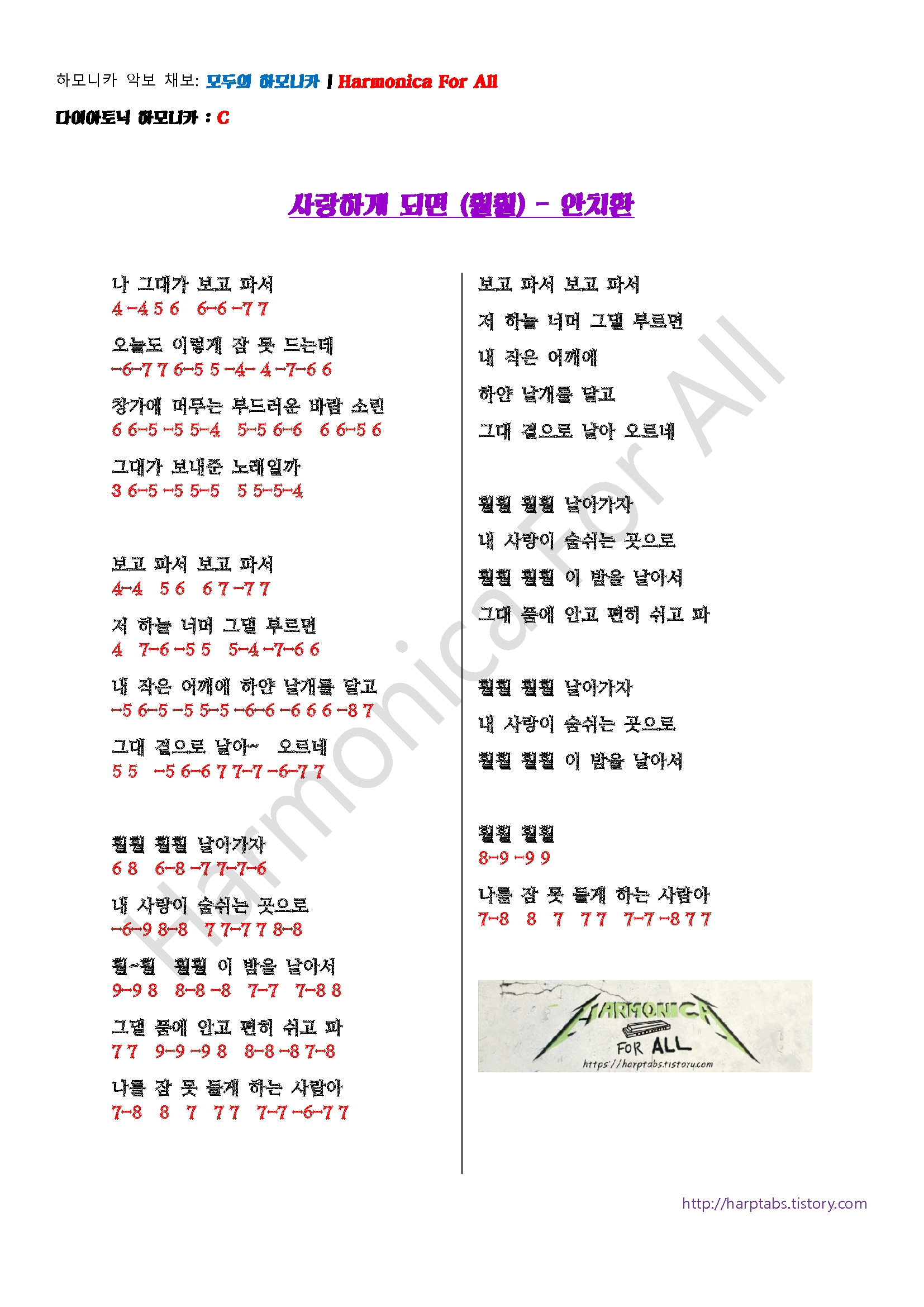 | 하모니카 악보 | 안치환 - 사랑하게되면, 모두의 하모니카 (0) | 2022.11.27 |