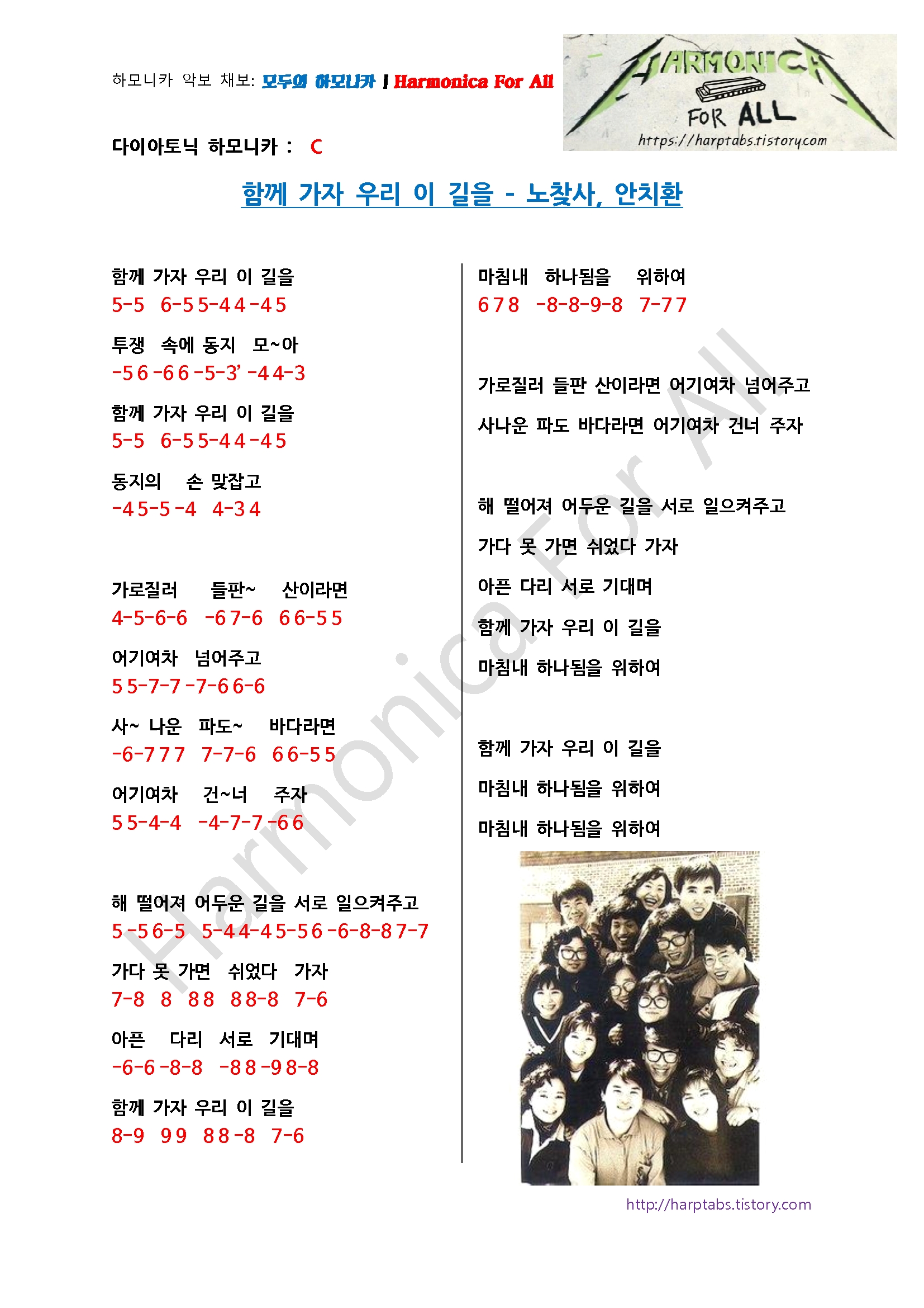 | 포장마차 - 김호철 | 민중가요 하모니카 악보 탭 배우기 [모두의 하모니카], G키 (1) | 2023.04.10 |