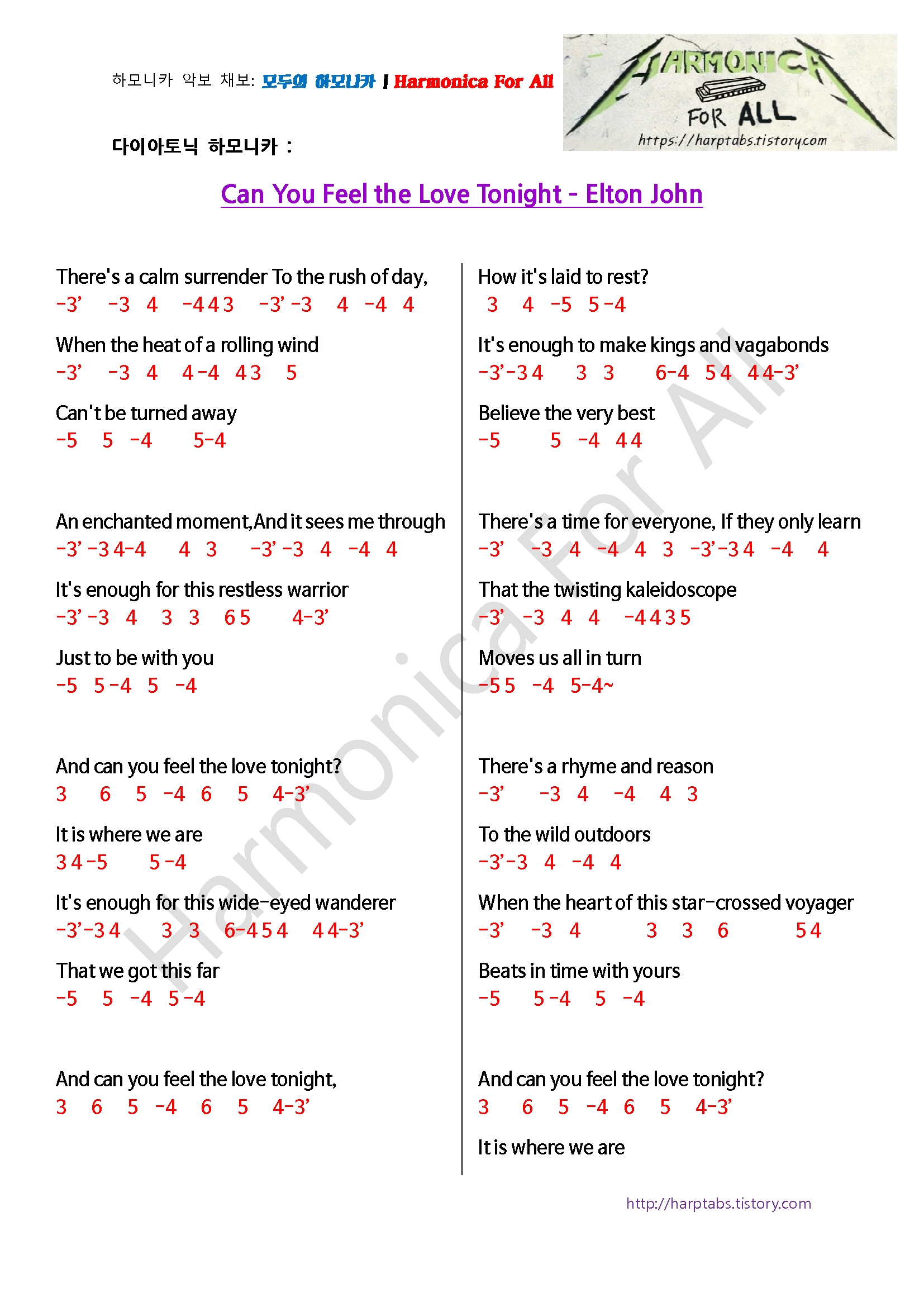 제 목 (Title) | Can you feel the love tonight |