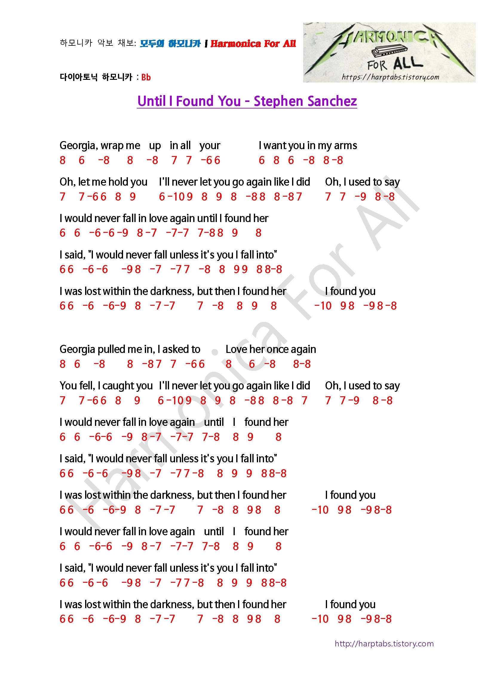 Until I Found You - Stephen Sanchez - Harmonica tabs music sheet for diatonic [Harmonica for All]
