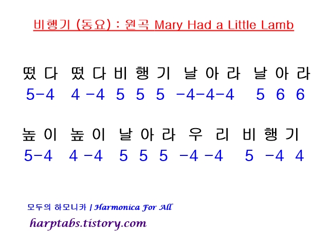 다들 잘 아시는 "비행기" 동요 입니다. 원곡은 Mary Had a Little Lamb라는 외국동요 입니다.