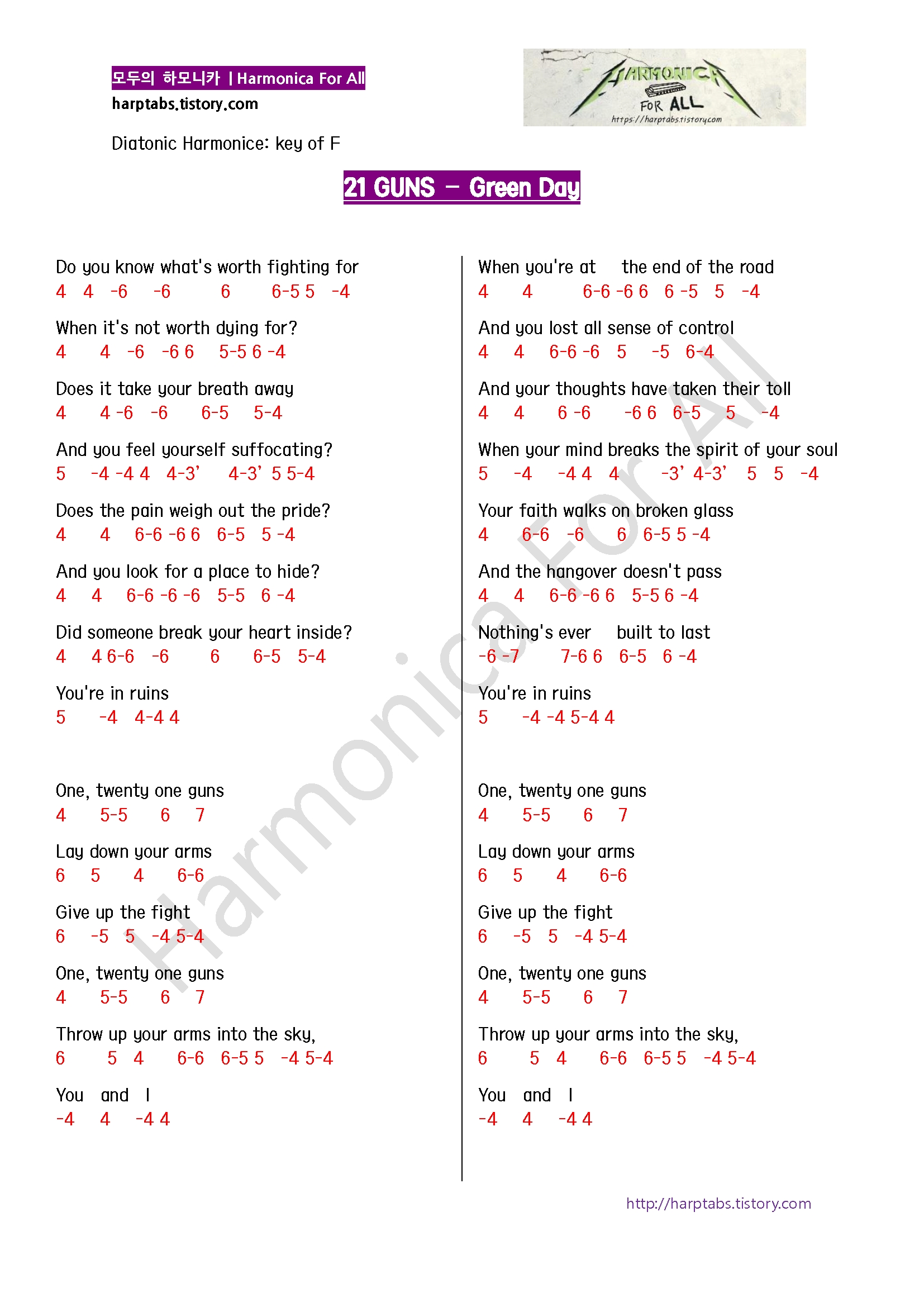 | 연주 시 주의할 점 (Points to play) | C키 반주: https://www.youtube.com/watch?v=LE89j362a1o |