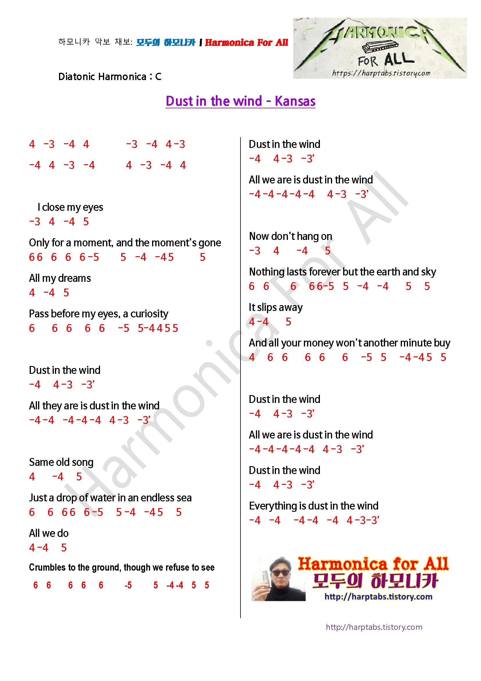 Dust in the wind - Kansas | Harmonica tabs & cover, sheet music 캔사스, 하모니카 악보 연습 탭 [Harmonica For All]