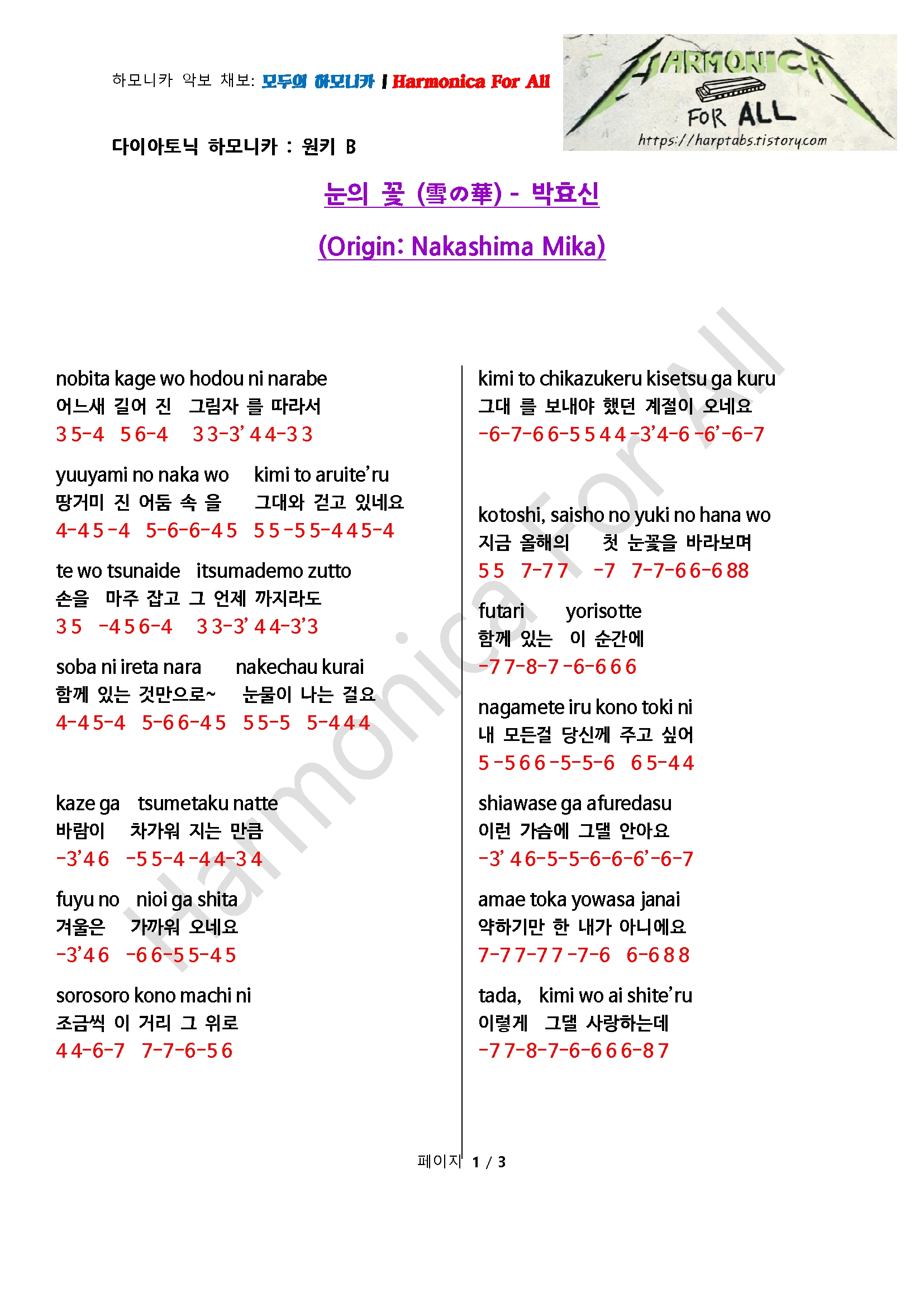 | 제 목 (Title) | 雪の華, 눈의꽃, Snow Flower |