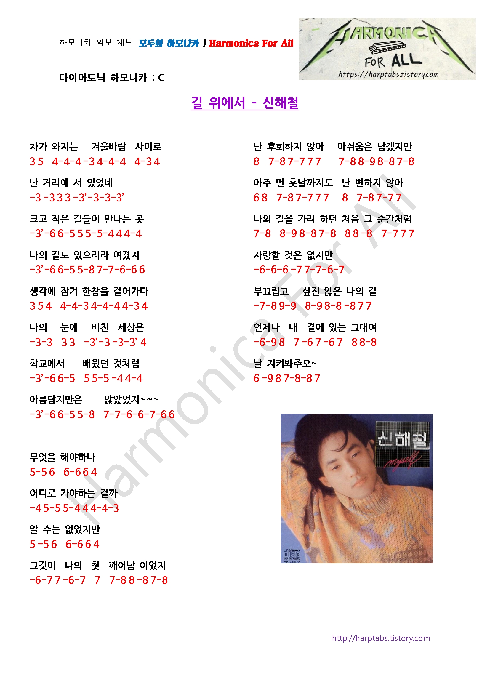 김민기 - 친구 | C키 다이아토닉 하모니카 탭 악보 (0) | 2024.08.27 |