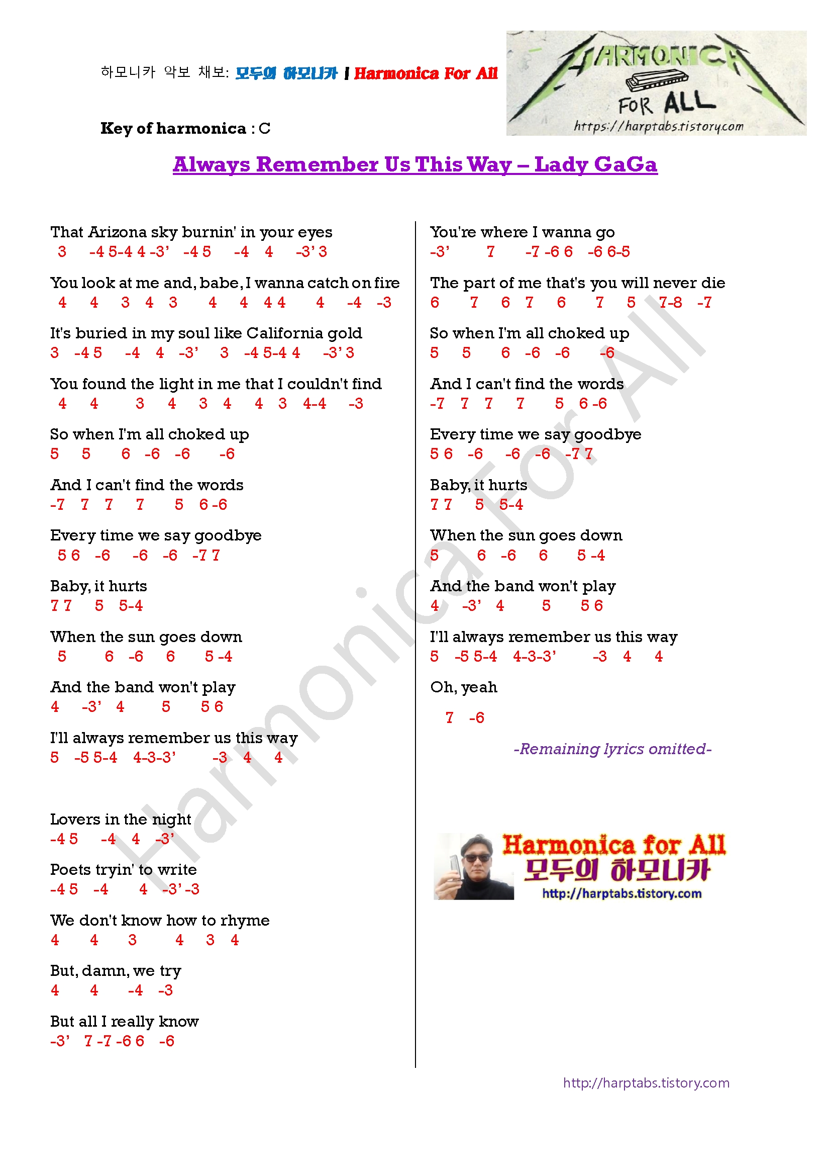 | 연주 시 주의할 점 (Points to play) | A Star Is Born - Sound Trac / OST |