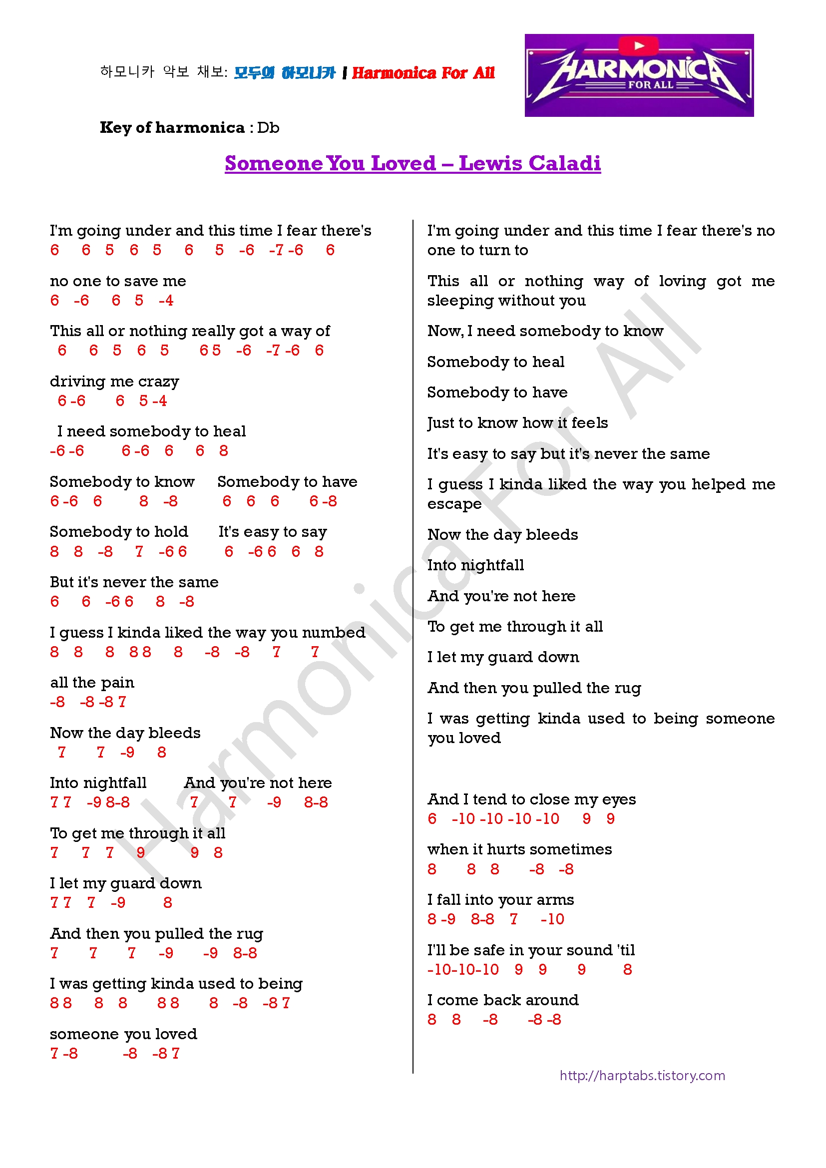 | Older - Sasha Sloan | B harmonica tabs and lyrics (0) | 2024.12.28 |