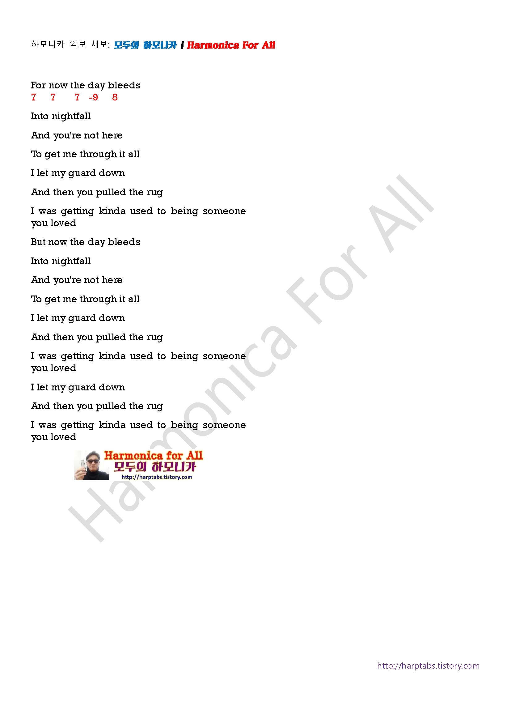 | Don't know what you got till it's gone - Cinderella | key of A, harmonica tabs and lyrics (0) | 2024.12.28 |