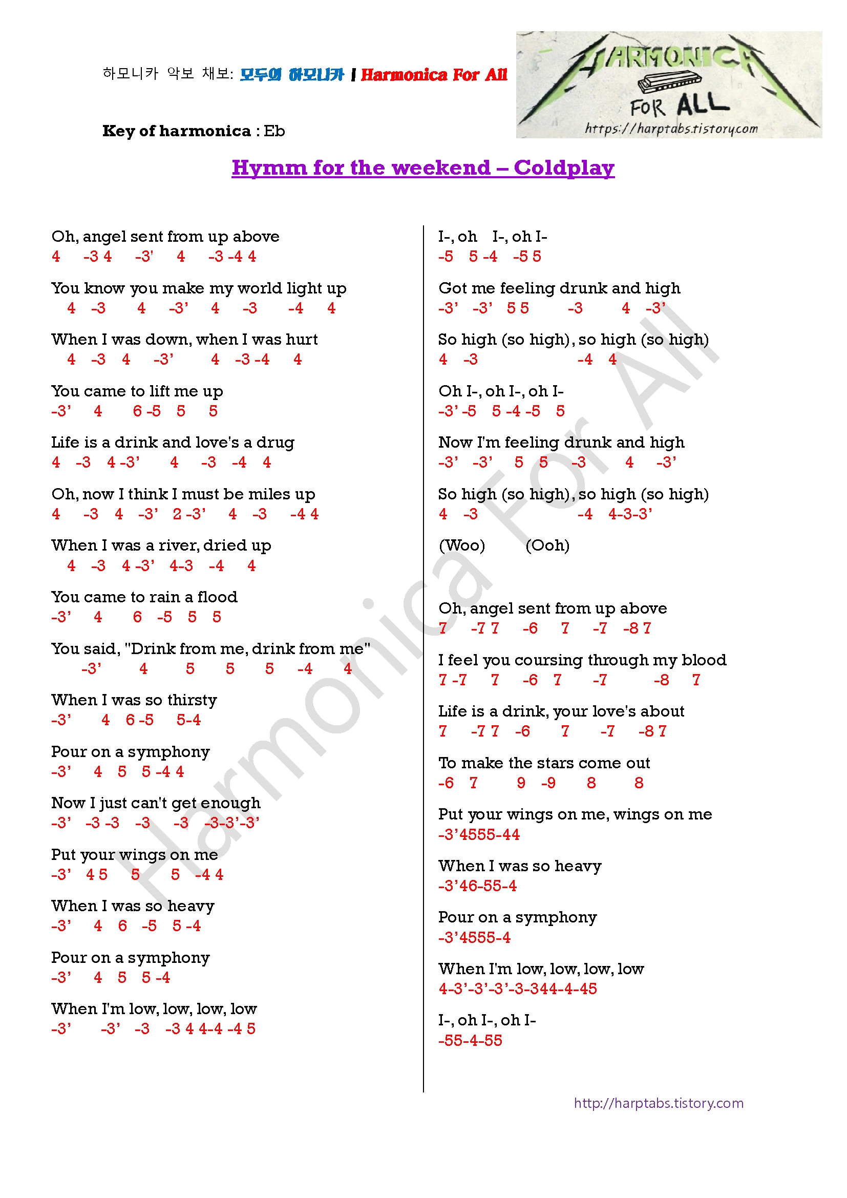 | Viva la vida - Coldplay | harmonica tabs and lyrics 하모니카 악보 탭 (0) | 2025.03.30 |