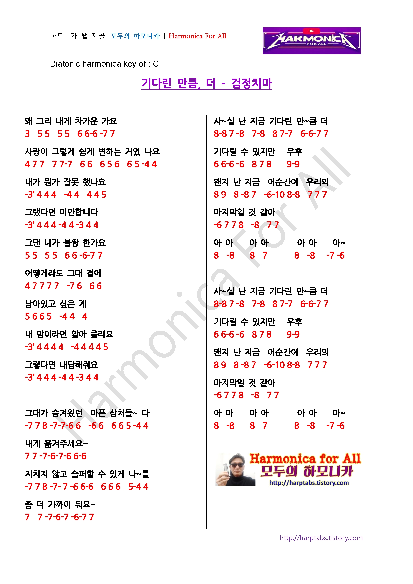 | 나에게로의 초대 - 정경화 | 하모니카 탭 악보 & 가사 (0) | 2025.02.01 |