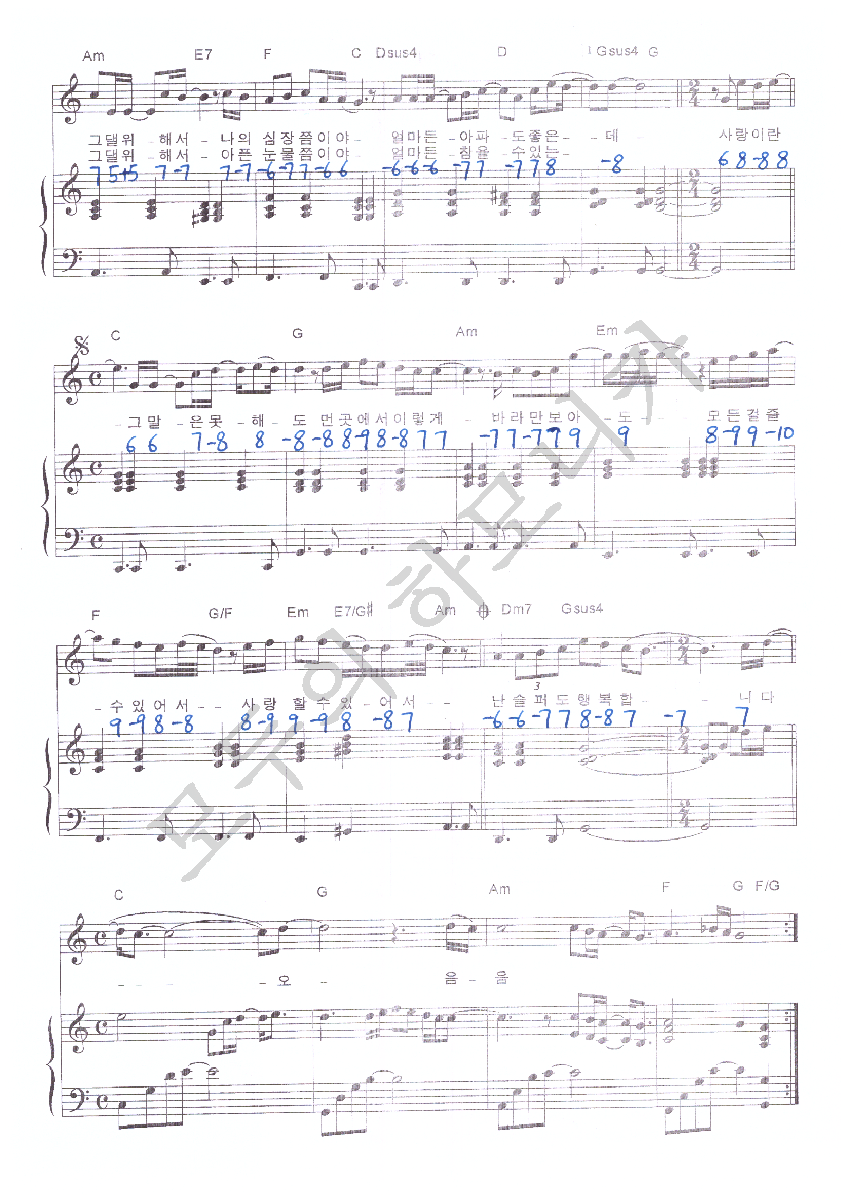 연주 시 주의할 점 (Points to play) | 후렴 '아무것도 바라지 않아도~~' 부터 키 변합니다. (Dm --> D) |